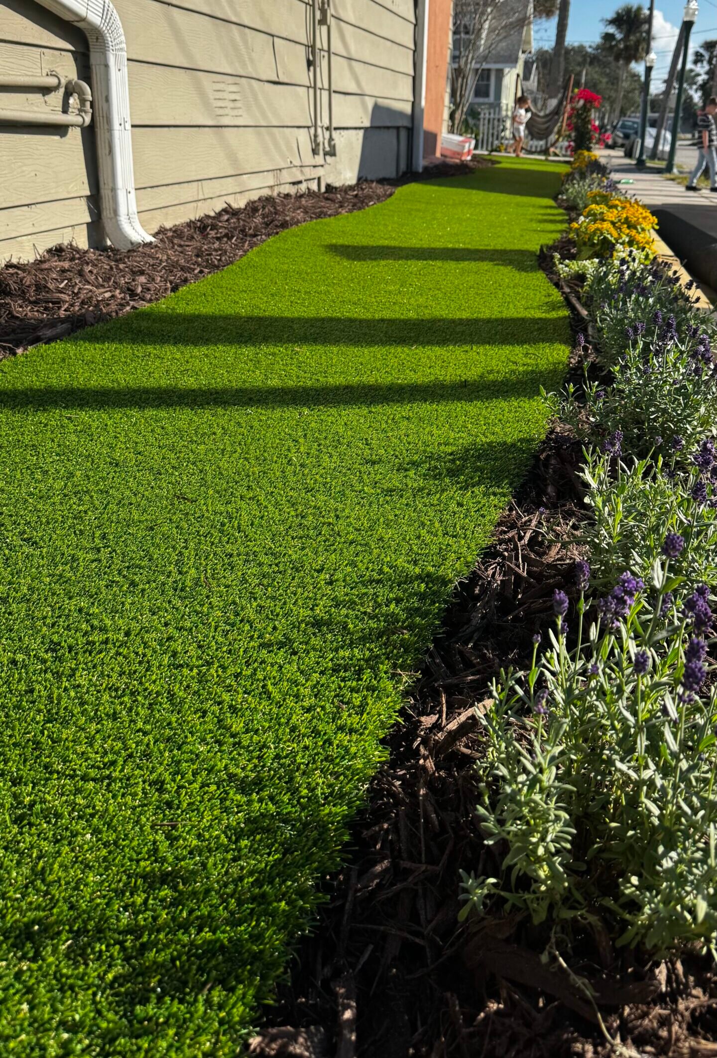 Vibrant, low-maintenance artificial turf installed for a clean and green look all year round.